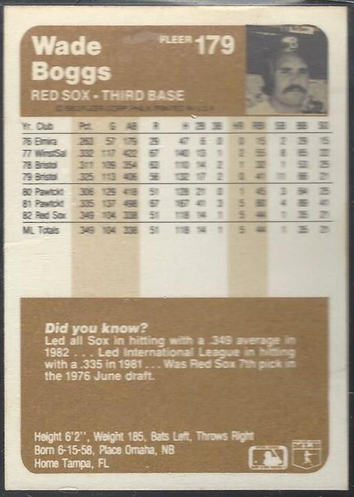 #179 Wade Boggs 1983 Fleer