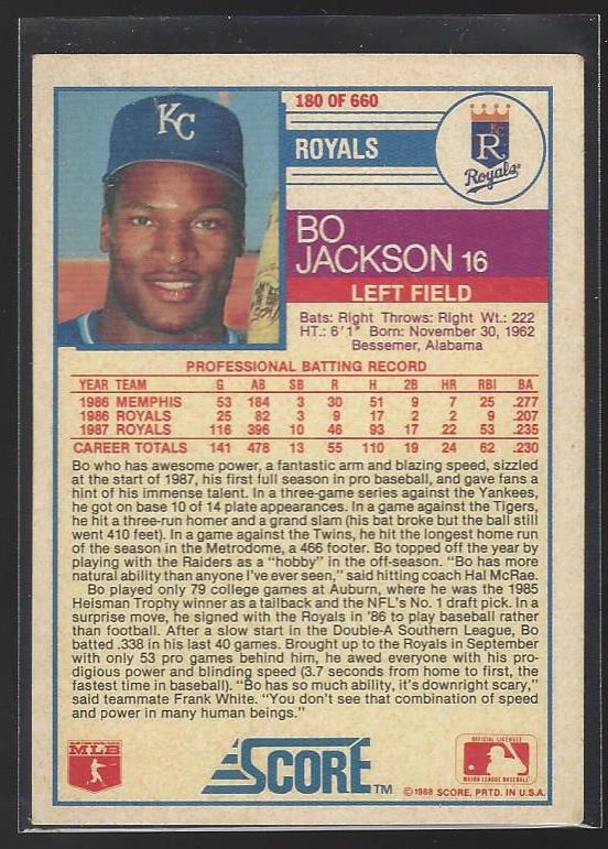 #180 Bo Jackson 1988 Score