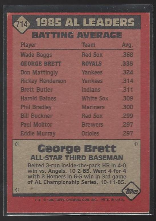 #714 George Brett All Star 1984 Topps