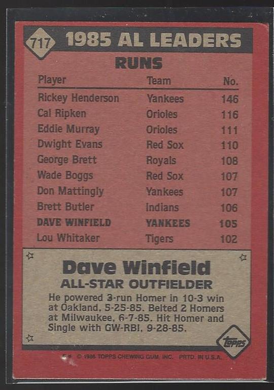 #717 Dave Winfield All Star 1984 Topps