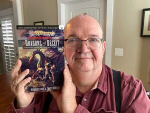 Tracy Hickman (born 1955) is an American fantasy and science fiction author best known for his influential work in shared-world fantasy and role-playing fiction, particularly the Dragonlance universe. Working frequently with Margaret Weis, he helped shape modern fantasy tie-in fiction and character-driven epic fantasy.